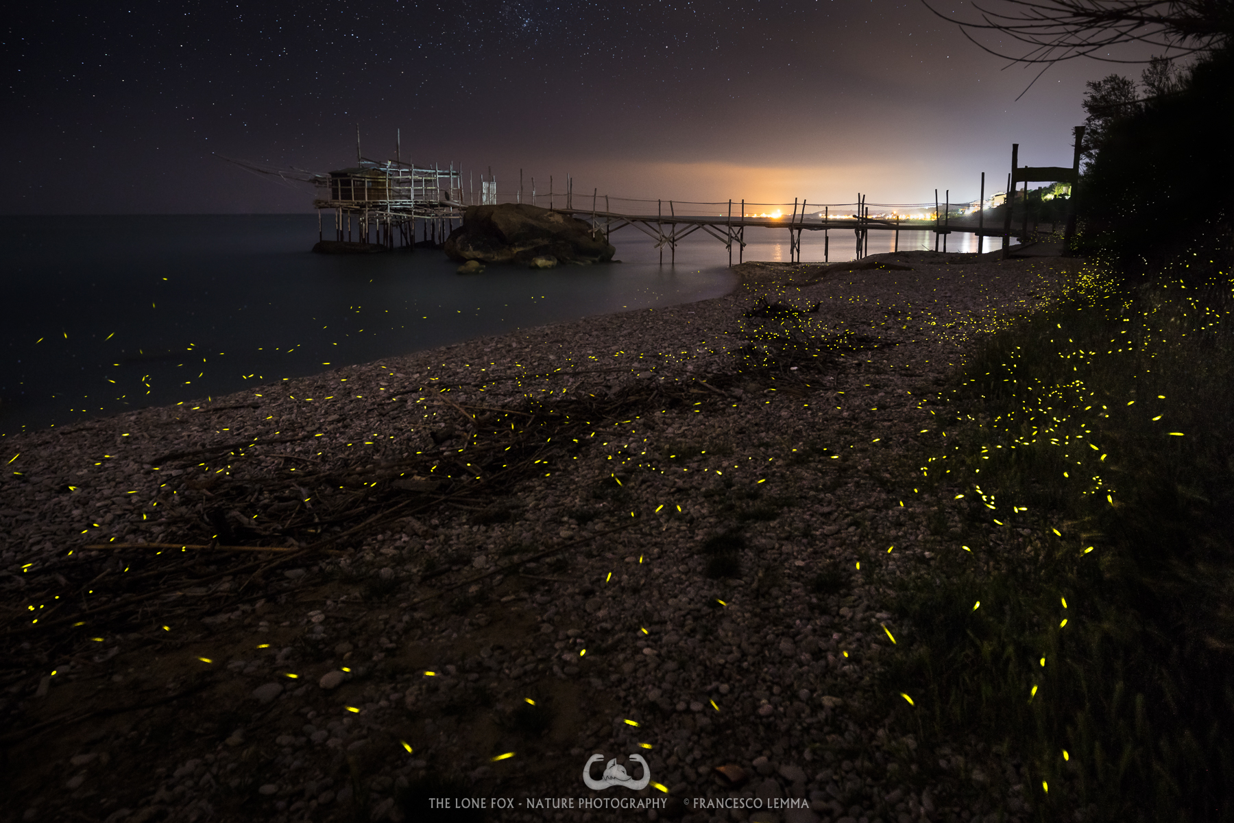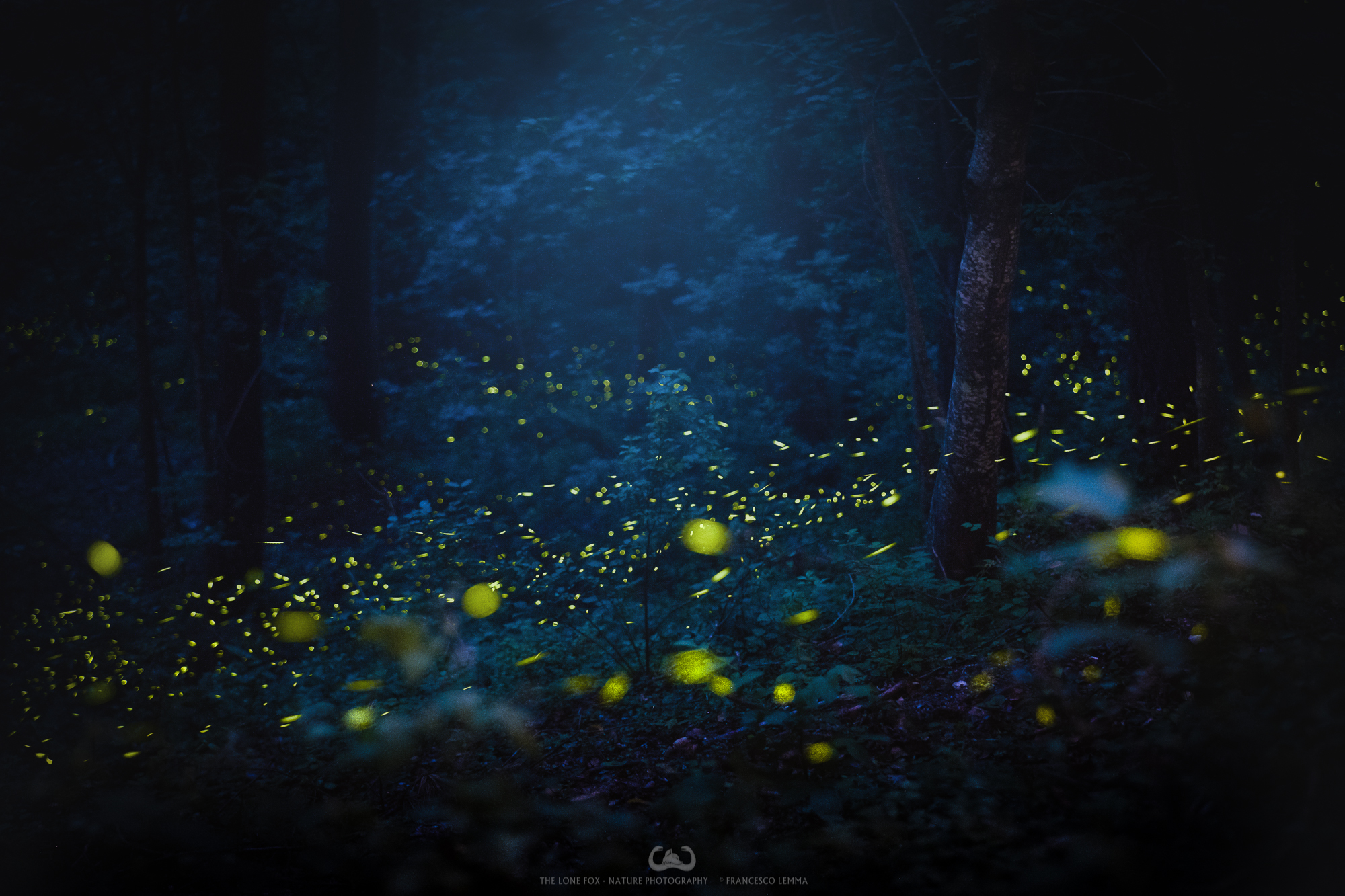 Ritrarle in foto non è però immediato. Innanzitutto il flusso luminoso di una lucciola è circa 0,3 lumen ovvero 1/40 circa rispetto a quello di una candela: questo dato permette di avere un’idea di quanto sia ridotta la luce che invece deve essere “catturata” dalla macchina fotografica. Inoltre il momento in cui si alzano in volo inizia al crepuscolo, quando le condizioni di luce necessitano già di particolari accorgimenti. Ecco che il risultato è possibile sommando lunghe esposizioni in cui strati di luce si sovrappongono sia per il paesaggio sia per i lampeggi.